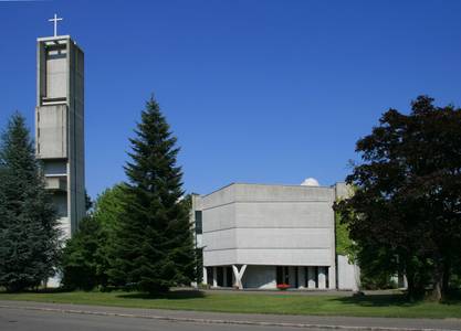 Die Kirche ist das spezielle Werk von Prof. Döcker, der daran von den 1963 begonnenen Vorentwürfen an bis zu seinem Tode im Sommer 1968 gearbeitet hat, als die Kirche fast fertig war. Prof. Dr.-Ing. Richard Döcker, 1894 geboren, war bis 1958 als ordentlicher Professor Inhaber des Lehrstuhls für Städtebau und Entwerfen an der Universität Stuttgart. Seit 1957 war er Mitglied der Akademie der Künste in Berlin und erhielt aufgrund seiner herausragenden Leistungen 1958 die Ehrendoktorwürde der Universität Karlsruhe.