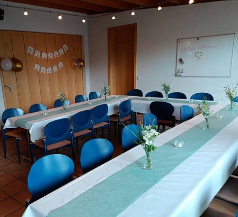 Der Gemeindesaal kann für Besprechungen oder Workshops genutzt werden.