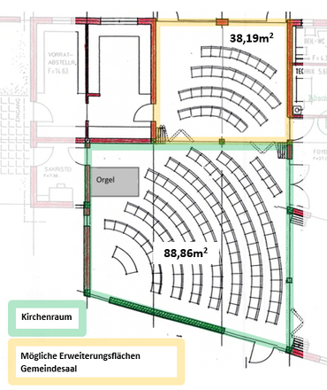 Der Gemeindesaal hat eine Fläche von 38m2.